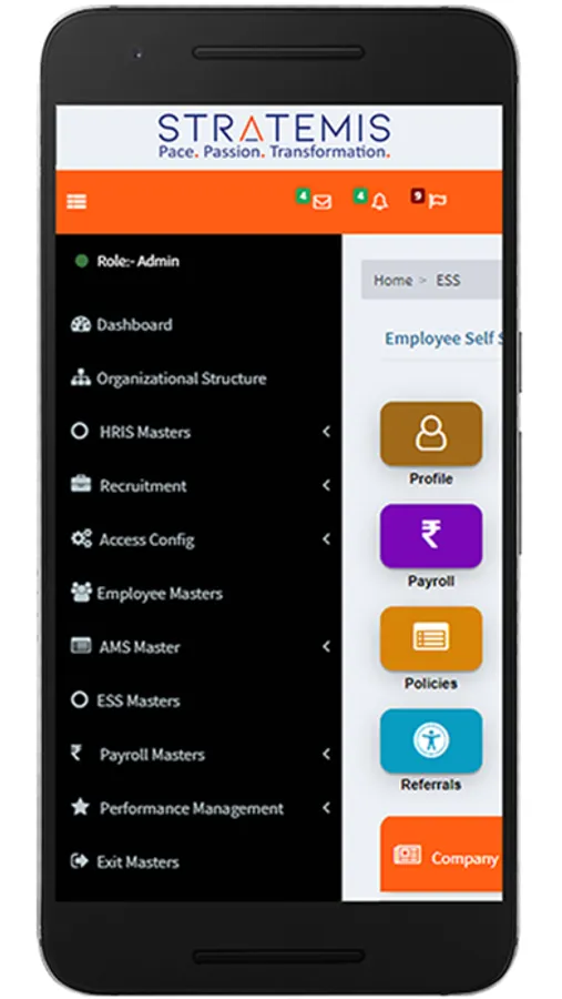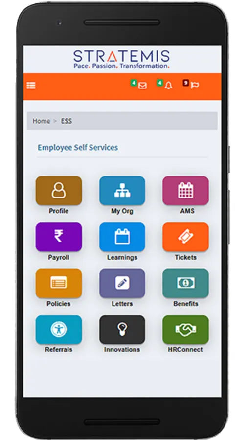 Some of the key features offered in the StratemisHRIS Mobile App include: