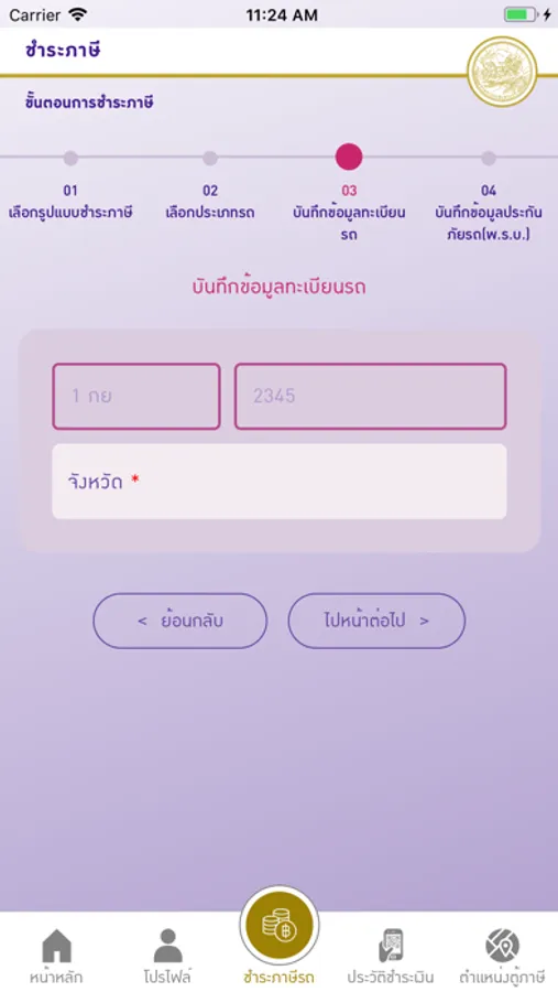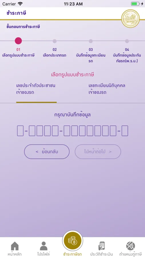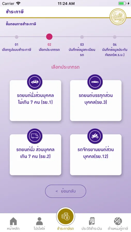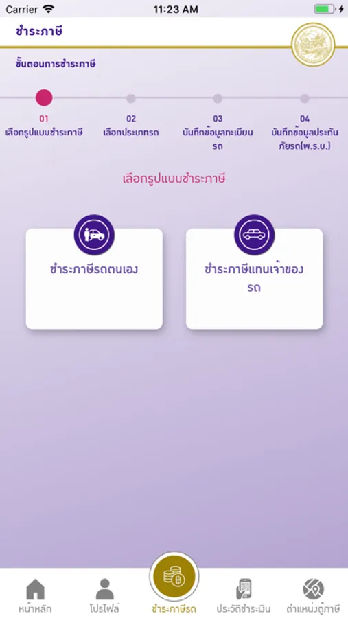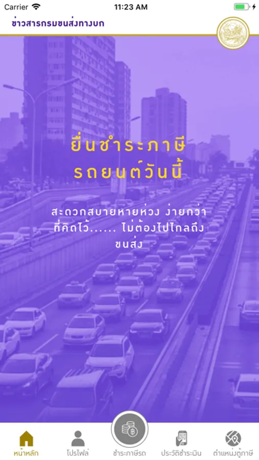 แอปพลิเคชันโดยกรมการขนส่งทางบก สำหรับชำระภาษีรถประจำปีสำหรับรถยนต์นั่งส่วนบุคคลไม่เกิน 7 คน (รย.1), รถยนต์นั่งส่วนบุคคลเกิน 7 คน (รย.2), รถยนต์บรรทุกส่วนบุคคล (รย.3) และรถจักรยานยนต์ส่วนบุคคล (รย.12) โดยสามารถตรวจสอบรถที่อยู่ในเงื่อนไขสามารถชำระภาษี ตรวจสอบค่าภาษีรถประจำปีและเงินเพิ่ม (ถ้ามี) ที่ต้องชำระ และรองรับการชำระเงินผ่านระบบ QR Payment ของธนาคารต่าง ๆ ซึ่งจะได้รับหลักฐานการชำระภาษีรถประจำปีสำหรับใช้ชั่วคราวได้ 15 วัน และสามารถรับเอกสารพร้อมเครื่องหมายแสดงการเสียภาษีรถประจำปีฉบับจริงได้ทางไปรษณีย์ โดยในอนาคตจะสามารถพิมพ์เครื่องหมายแสดงการเสียภาษีรถประจำปีผ่านตู้ Kiosk ของกรมการขนส่งทางบก