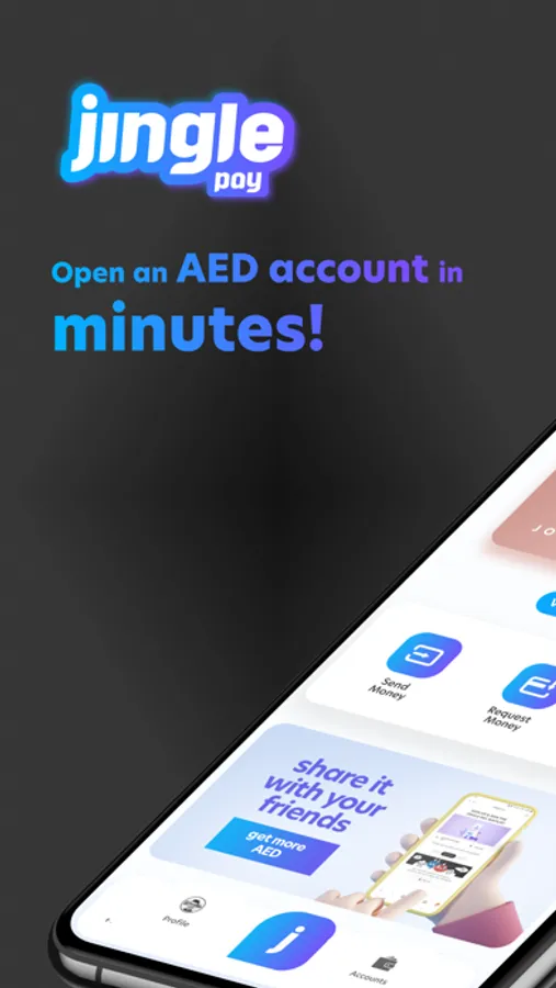 Jingle Pay empowers you with an AED account free of fees, paperwork and with zero-commitments, to reliably store, spend, and send money to 160+ countries, in 99+currencies, and at the best exchange rates globally – all through a seamless and user-centric mobile experience.
