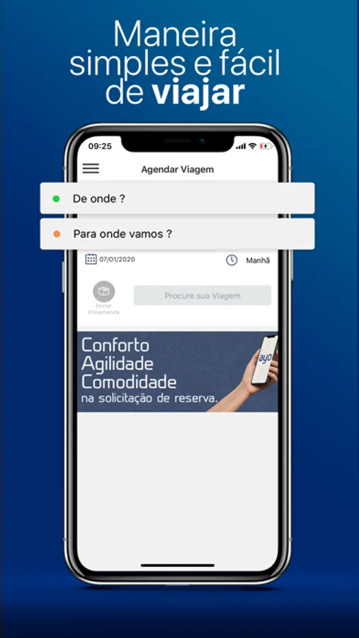Não importa se você está distante ou no centro da cidade. A Ayo embarca e desembarca você. Sua vontade e preferência são nossa prioridade. Seu agendamento é o nosso compromisso. É fácil fazer uma reserva pela Ayo. Veja como funciona: