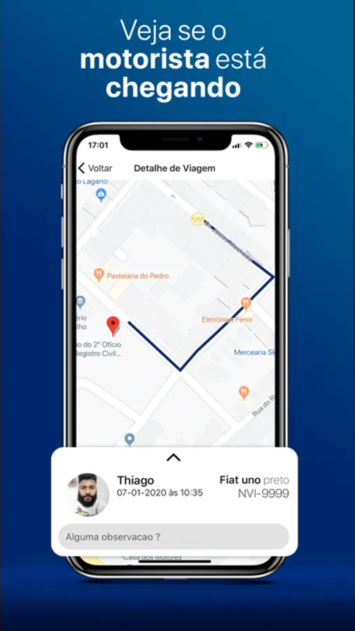 - Com agendamento concluído, você vai visualizar e confirmar a foto do motorista e os dados do veículo. Além disso, poderá acompanhar a chegada dele, no mapa, 30 minutos antes da sua reserva.