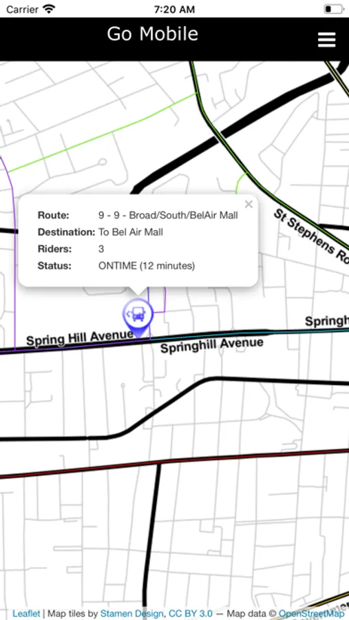 ► Current bus information. See whether the bus is on time, and if not, how far behind schedule. See how many passengers are on the bus to see if it is too crowded.