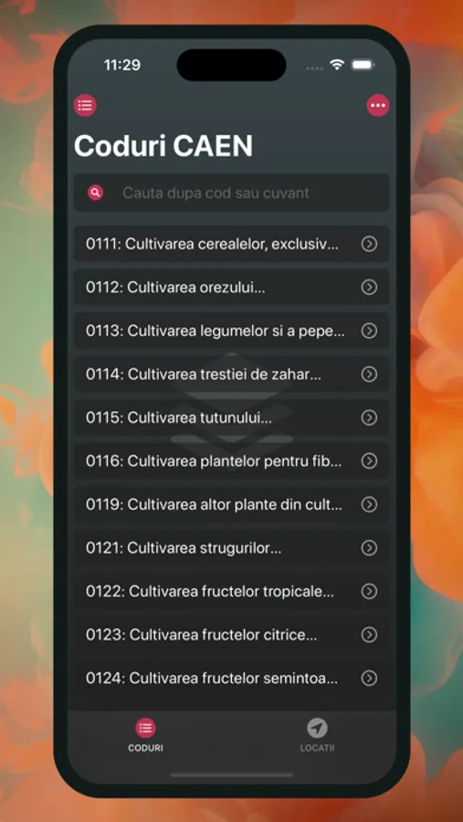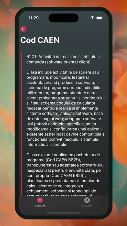 Aplicatia prezinta codurile Nomenclatorului CAEN rev. 2 / 2008, privind clasificarea statistica nationala a activitatilor economice din Romania