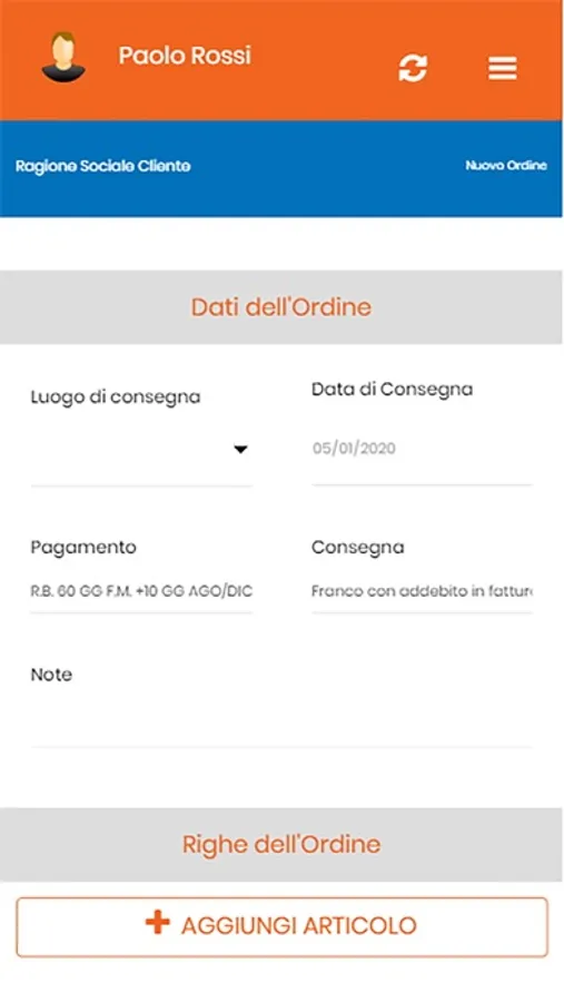 - inserire nuovi ordini scegliendo gli articoli dall'intero catalogo aziendale