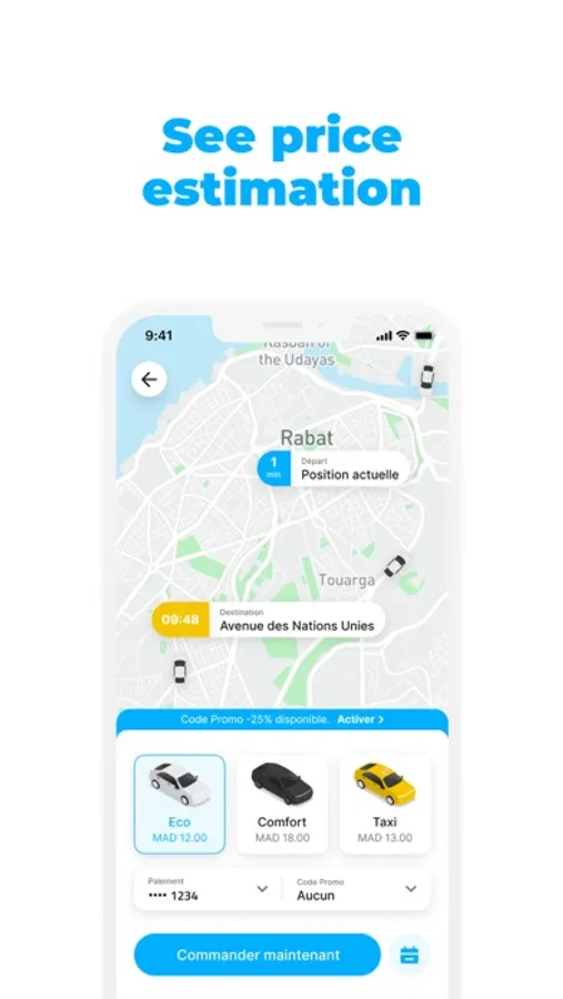 Request a ride or schedule one ahead of time and get anywhere, anytime in Morocco.
