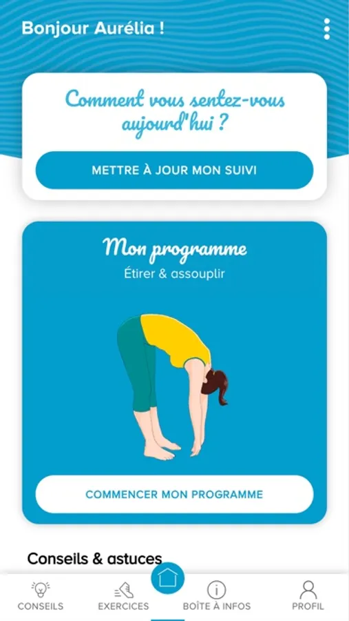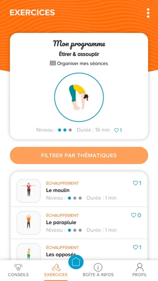 À la carte lorsque le profil n’a pas été rempli, les exercices peuvent également être présentés sous forme de programme personnalisé.