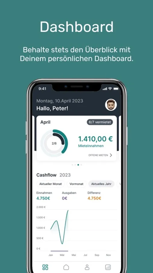 • Dashboard: Übersicht und Verwaltung Deiner Mieteingänge sowie des Cashflows