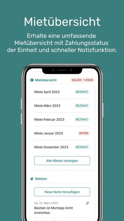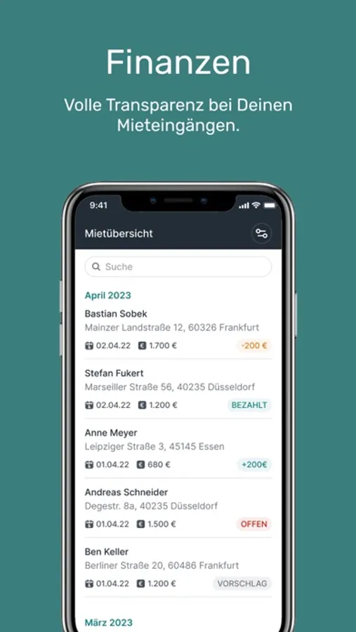 • Finanzen: Einblick und Verbuchung Deiner Mietzahlungen