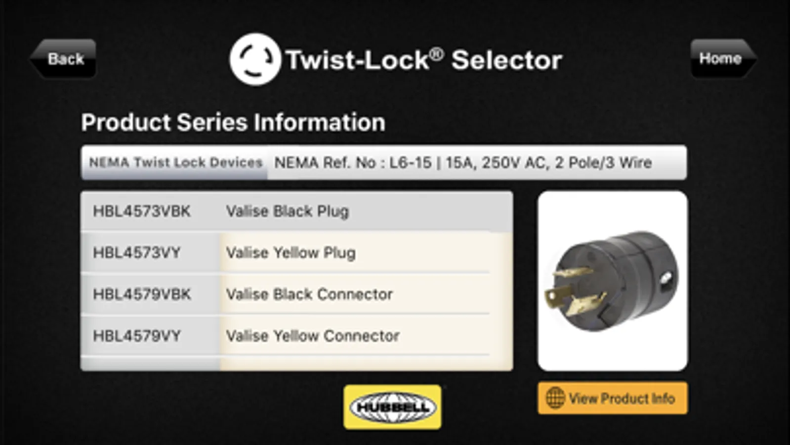 Quickly identify and choose a specific Twist-Lock device and view related products. Detailed product information is available to users with an active internet connection.