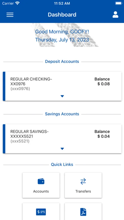 **Online customers must first setup transfer and bill pay accounts prior to using these features