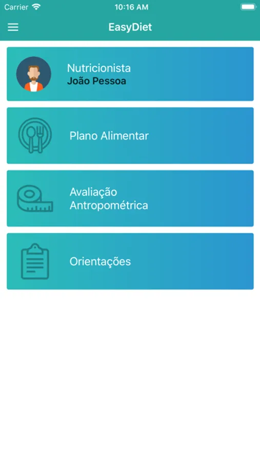 Sua(seu) nutricionista, na hora da consulta, vai cadastrar você no sistema EasyDiet. Quando ela(e) completar todas as prescrições nutricionais, você terá acesso direto no seu smartphone.