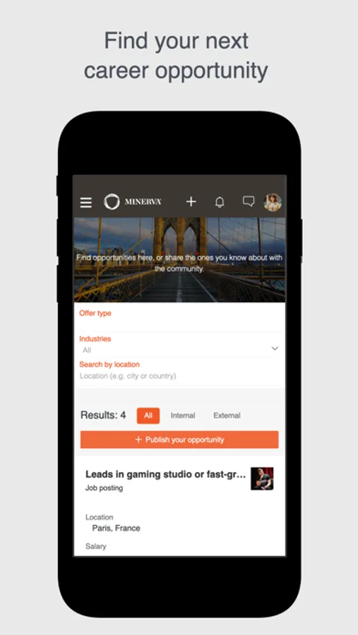 Minerva is the official mobile app for Minerva Schools alumni to connect with one another and the broader Minerva community.