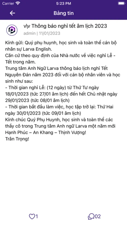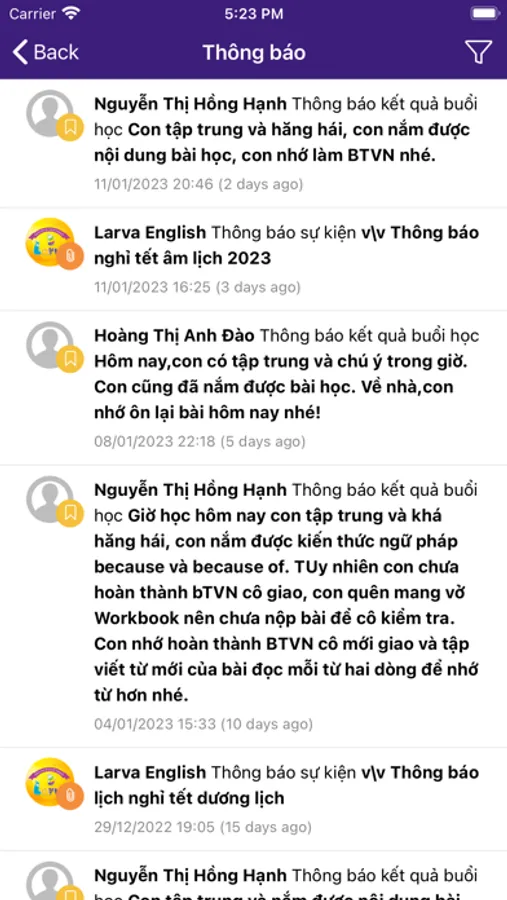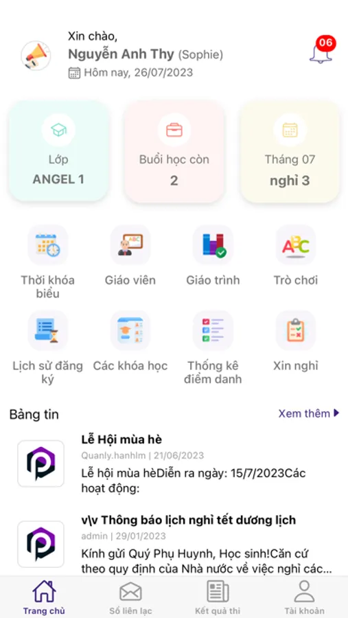 - Giúp phụ huynh cập nhật những thông tin nhanh nhất về tình hình học tập, thông báo từ trung tâm.