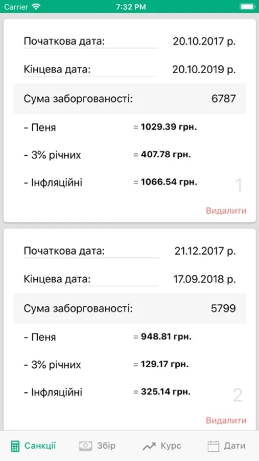 - калькулятор пені, відсотків річних, інфляційних втрат