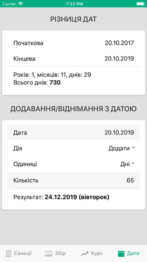 Калькулятор здійснює розрахунки на заборгованість за необхідні періоди та надає результат таких розрахунків. Крім того, розрахунок пені може бути здійснено з урахуванням максимального періоду нарахування в 6 місяців та з обмеженням подвійною обліковою ставкою НБУ (коли розмір пені встановлено в договорі).