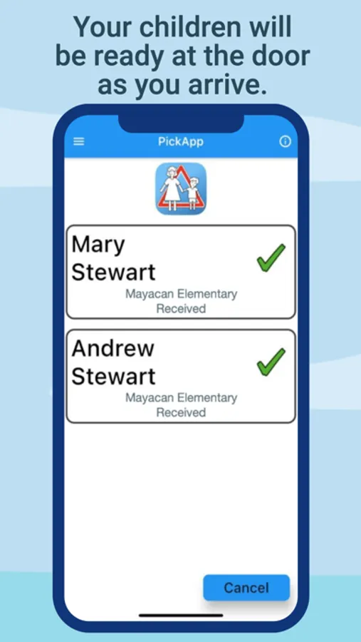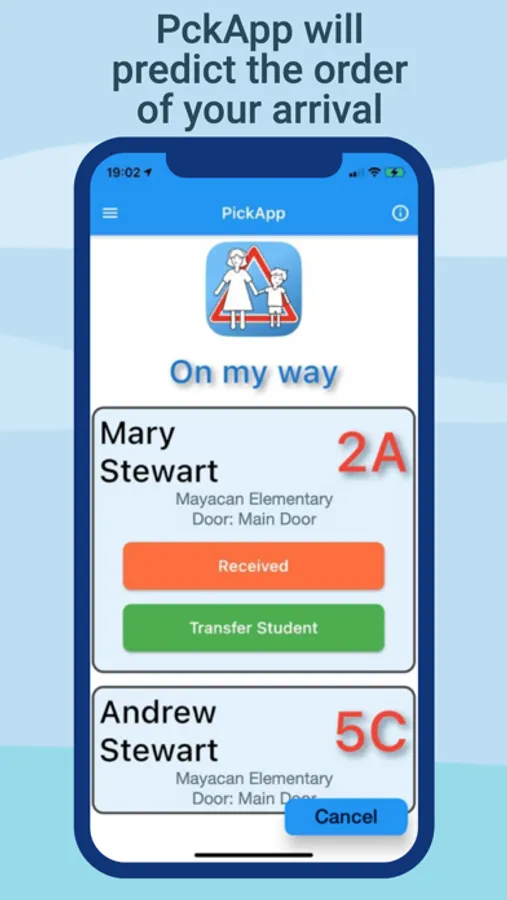 With this information, PickApp-School guides the school's staff to coordinate the delivery of the students from their desks in the classroom to the designated exit, just as the parent arrives to picks them up.