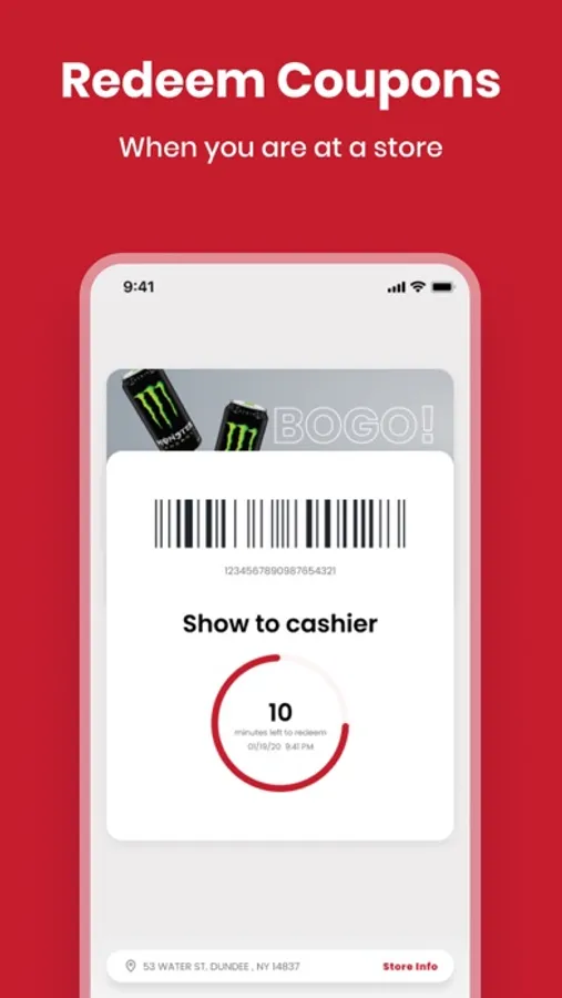 Simply tap the orange redeem button and show your phone at purchase to redeem your coupons.