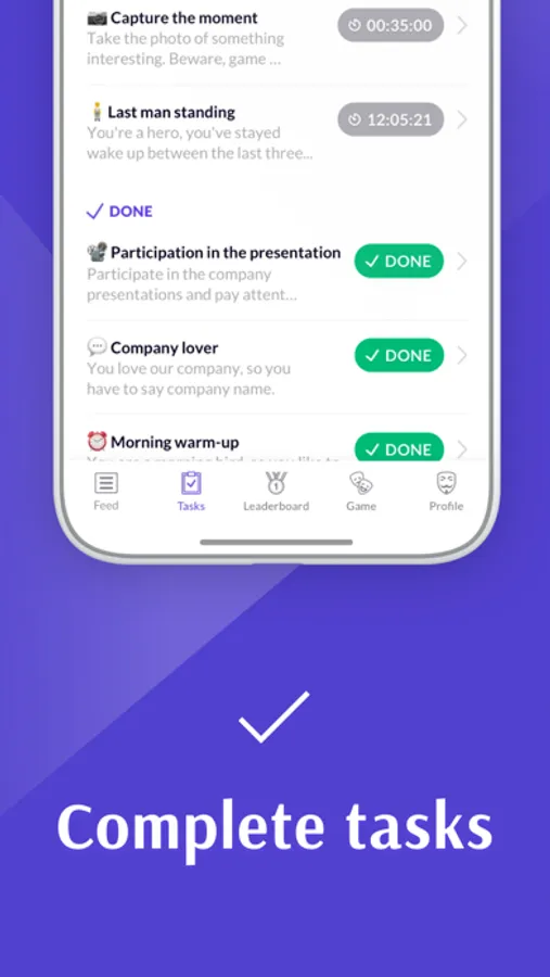 You can create your own game on EventBattle website. The game can be personalize to your event with many customizations such as custom tasks definition or branding the app to your company identity.