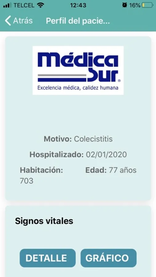 Con esta aplicación podrás visualizar información actualizada de tus pacientes, con base en los últimos registros de signos, exámenes de laboratorio, imagenología, entre otros.