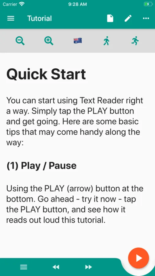 Reads out loud written content, plain text, files and web pages. For people who like to listen. Read eyes and hands free. iOS natural sounding voices. Super easy to use.