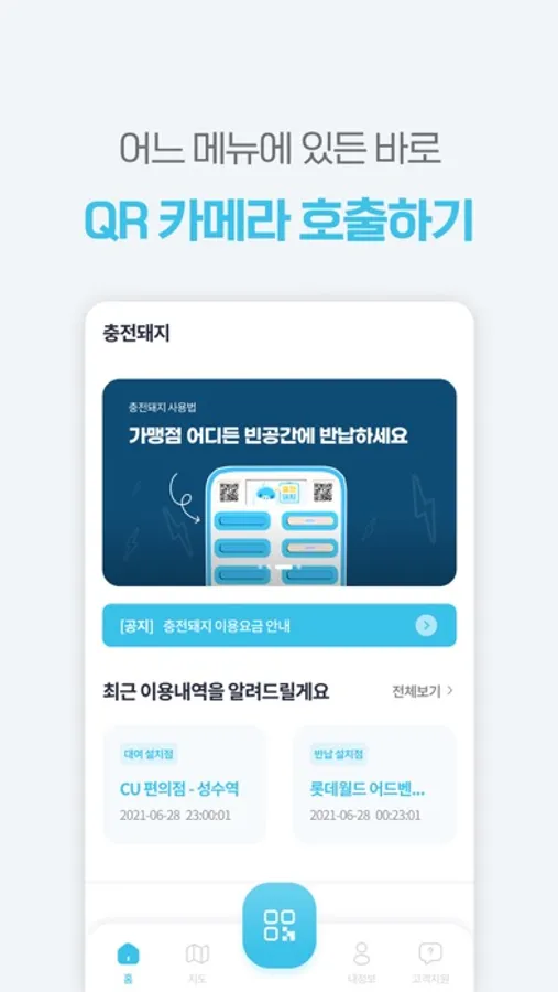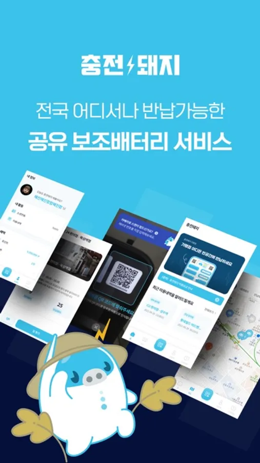 충전돼지(Piggycell)은 충전돼지 공유서비스로써, 가까운 충전돼지 가맹점에서 QR코드 간편 결제를 통해 여러분의 스마트폰 배터리를 100%로 만들어 드리는 서비스입니다.