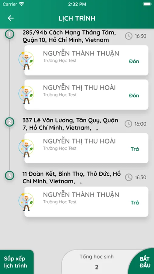 Với chức năng chỉ đường đi và các điểm đón/ điểm trả học sinh, tài xế an tâm để tập trung lái xe. Nhà xe quản lý tối ưu dịch vụ cung cấp xe, tài xế phù hợp với nhu cầu của học sinh, trường học. Nhà xe giám sát việc đưa đón học sinh có đúng hợp đồng/ nhiệm vụ hay không. Tài xế/ nhà xe liên lạc dễ dàng với phụ huynh hoặc nhà trường trong các trường hợp khẩn cấp để hỗ trợ kịp thời.