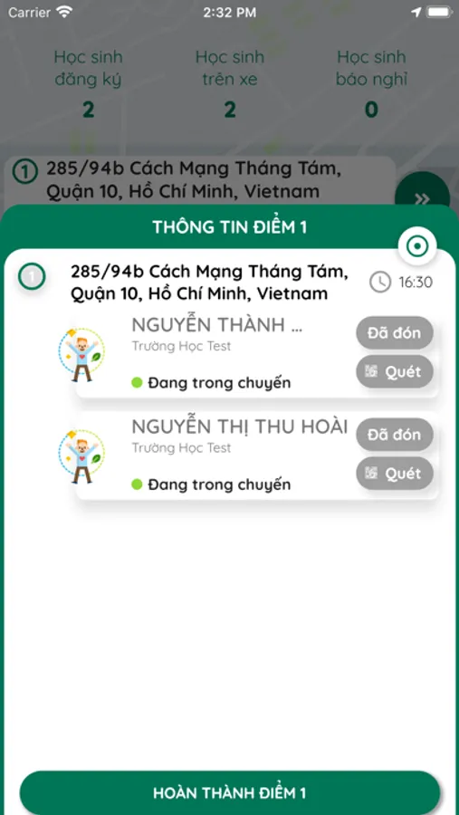 Chức năng quản lý cho tài xế/ nhà xe với ứng dụng Bus2School Driver phân ra 2 cấp: tài xế và nhà xe. Tài xế dễ dàng đi theo lộ trình đã đăng ký trước, có thể mở rộng thêm chức năng cho người trợ lý đón/ trả học sinh để liên hệ với gia đình học sinh hoặc người tiếp nhận học sinh của nhà trường.