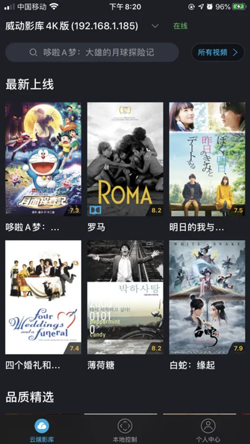 2、本地控制——登录后APP与威动智能影库连接同一个WIFI,通过APP对威动智能影库进行操控。