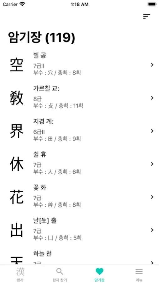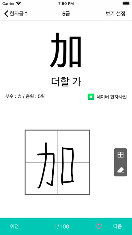 직접 써보며 한자 공부를 할 수 있는 어플입니다.