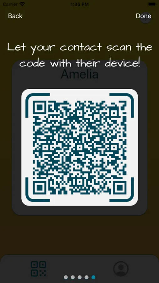 Fast and easy way to share your contact information! No typing, just a simple, scannable code. You can choose which ones of your details you want to share each time and display them as a QR code.