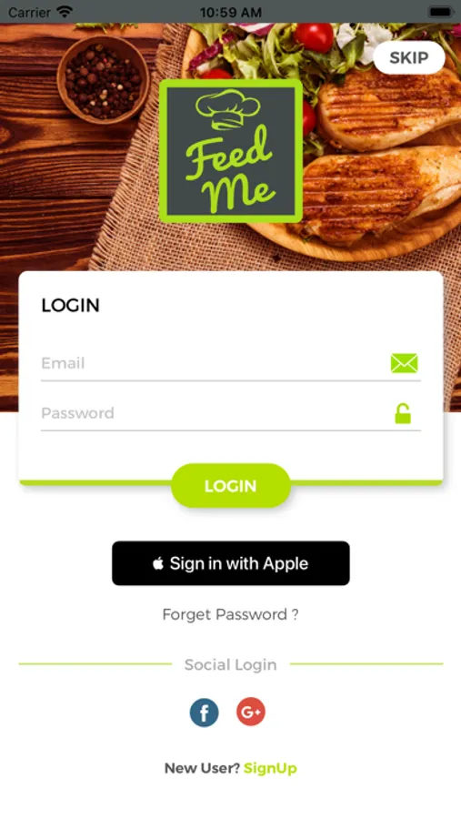 • Log in with your existing Feedme account or create a new account using Facebook/Google