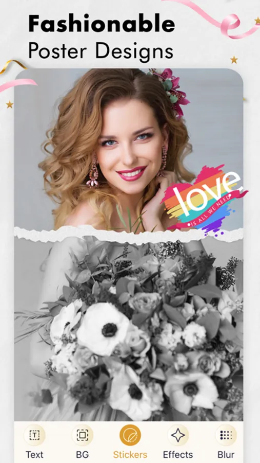 The app offers a wide variety of filters keeping in mind various kinds of occasions for invites and posters. 30+ categories are available for stickers.