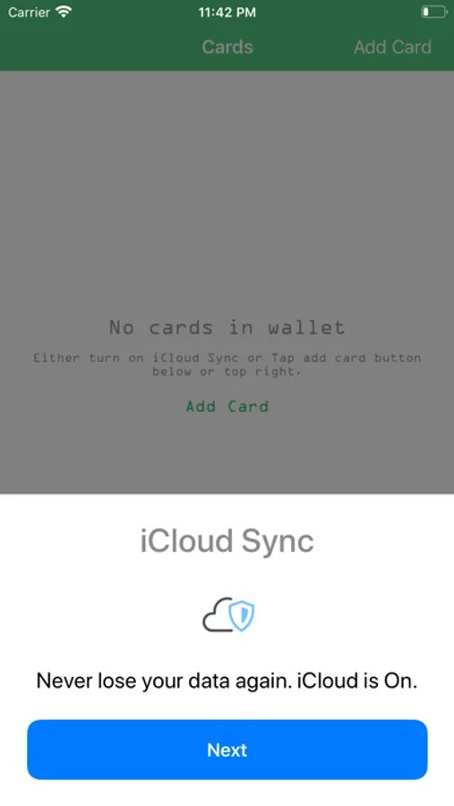 * All your card info saved in the local storage of your iOS devices and also synced with your cloud account which makes sure only you have the access to your data.