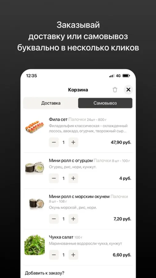 — Быстрый заказ с мгновенным подтверждением через приложение.