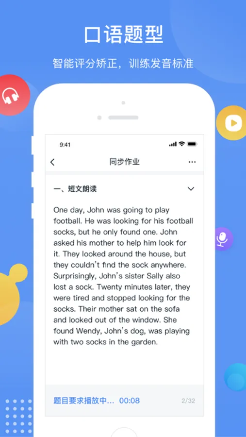 智能口语评分,精选听力资源,视听说多维度训练。紧扣英语课程标准,结合中考场景,为学生制定视听说学习全面提升方案。