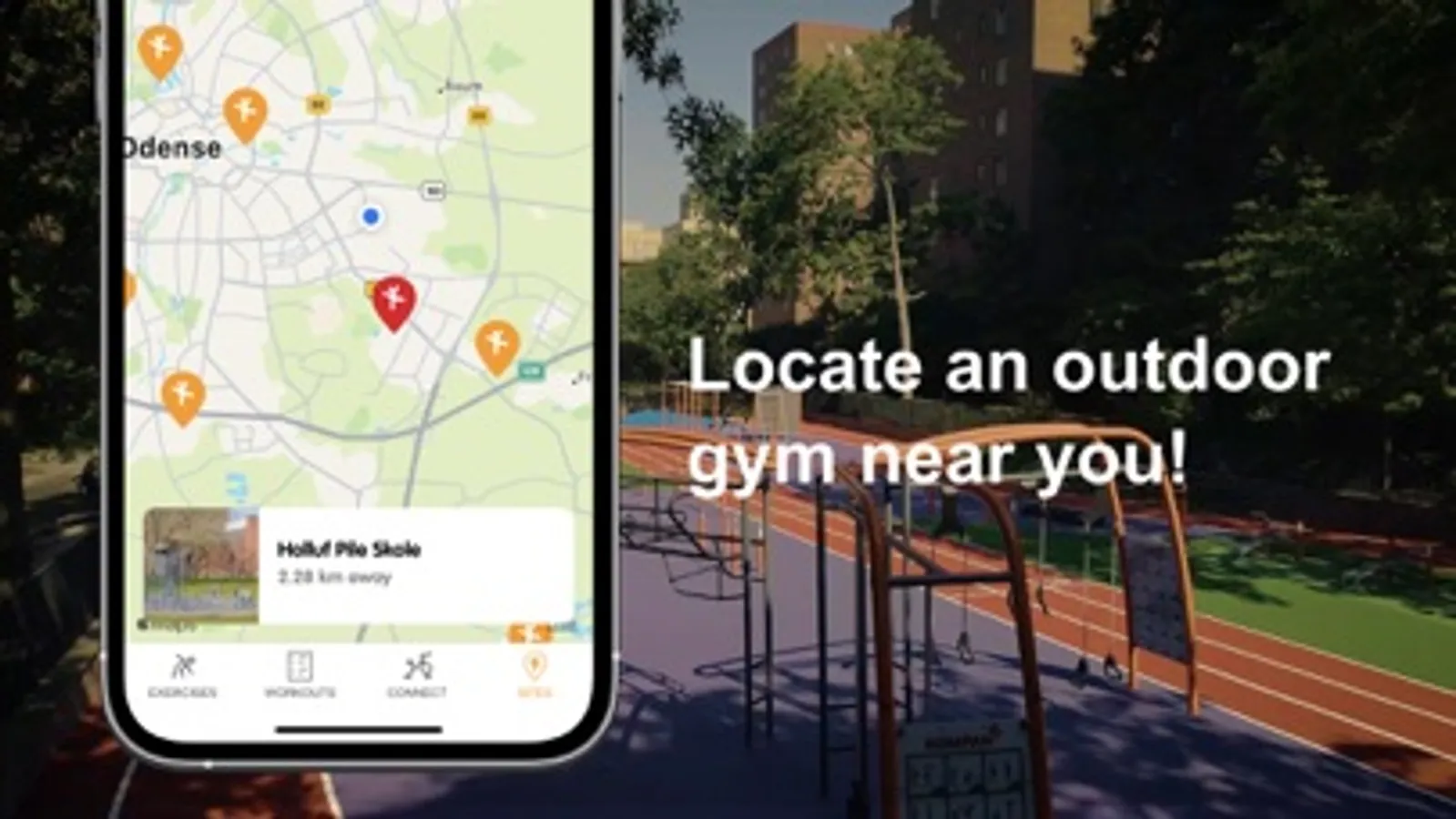 With no sign-up, you can quickly get started. You only have to download the app, and then it will help you find a location nearby and prepare you to get started. The app works as a personal trainer for you, demonstrating exercises and suggesting workouts.