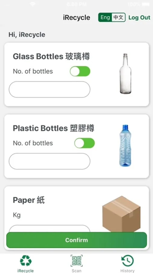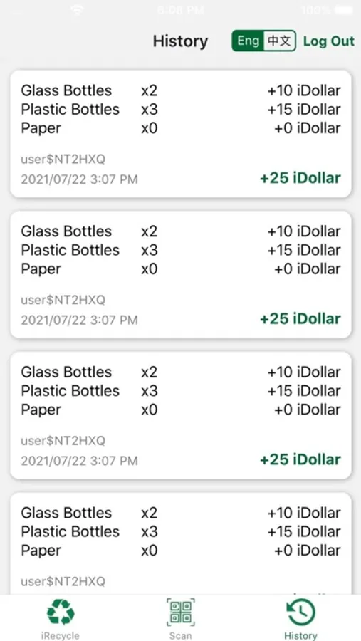iRecycle is a mobile APP to increase the value of recycling by allowing the user to earn iDollar