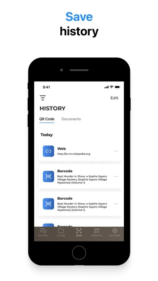 - Folders for convenient utilization. You can organize your QR Code and Barcode in multiple folders.