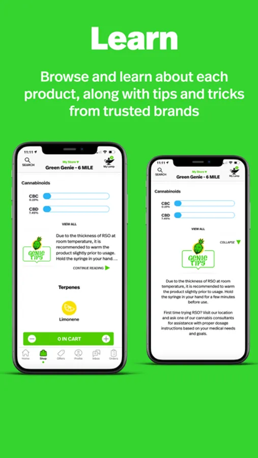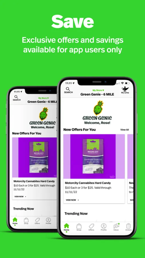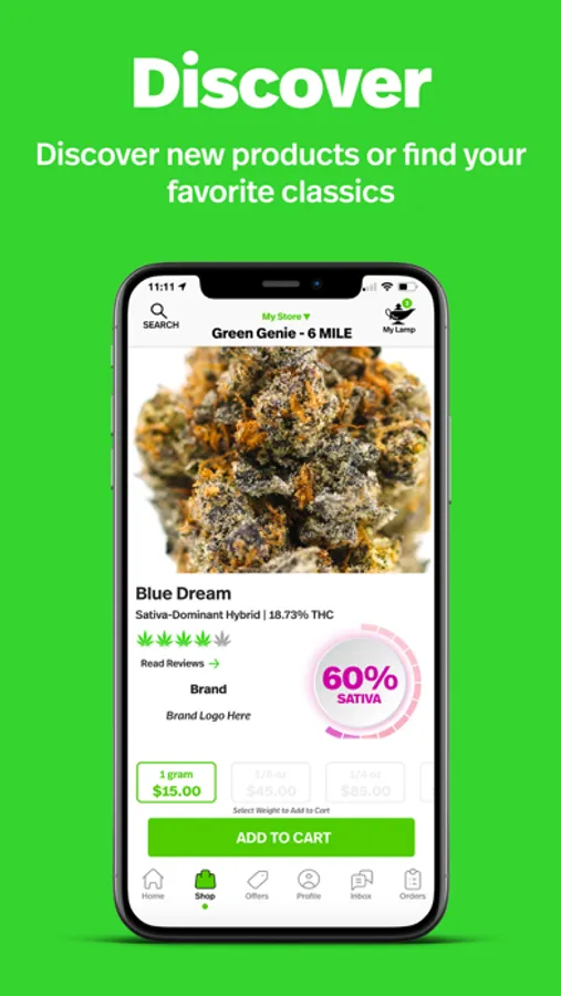 This app allows Green Genie patients the ability to browse our selection of available products along with exclusive access to personalized notifications regarding new arrivals, flash sales, and events. Explore detailed product information including THC and CBD levels, medical benefits, and more including: