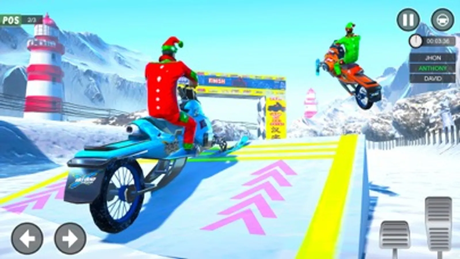 In this snow bike race games win against your rivals, Extreme super bike stunts and mountain bike racing. You are playing one of the best bike stunt games of the world, you might have played different stunt racing games but this chilly Snow ATV Bike Stunts is different interesting and addictive among all other snow bike race games. In the bike stunt, the extreme game performs crazy flips, ATV bike stunt rider wheelies, or bike stunt impossible game back flips to score the highest points in the ATV bike stunt jump game.