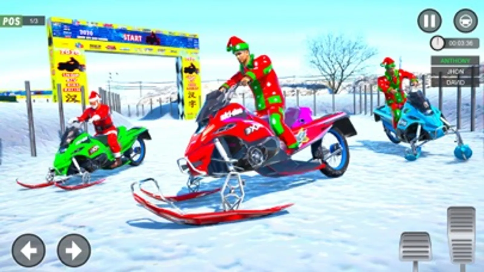 You have multiple variety of Santa snow ATV bikes, choose the best one to drive on the snowy tracks & difficult roads. Cross the obstacles and curvy roads to reach before finish line. It will increase you happiness by wearing Santa Klaus costume on the victory stand, there is no drive who can defeat if you tried to win.