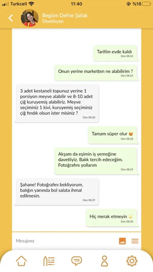- Diyetisyeninizle her öğüne özel sohbet alanında anlık olarak beslenmenizi