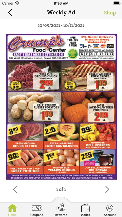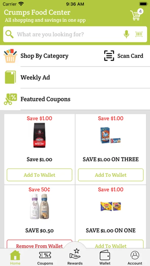The Crump’s Food Center rewards App is the best way our loyal shoppers can receive extra saving every time they shop and NOW place an online order! It’s easy to use, log in or register for an account, add coupons to your App Cart and scan your Crump’s Food Center App barcode at the registers to earn points and redeem your coupon(s). To order your groceries online, simply add the items to your cart on the App or website, all items with available coupons will apply, select the time you desire for pick-up, and confirm your payment method. Order your groceries online NOW with Crump’s Food Center App!
