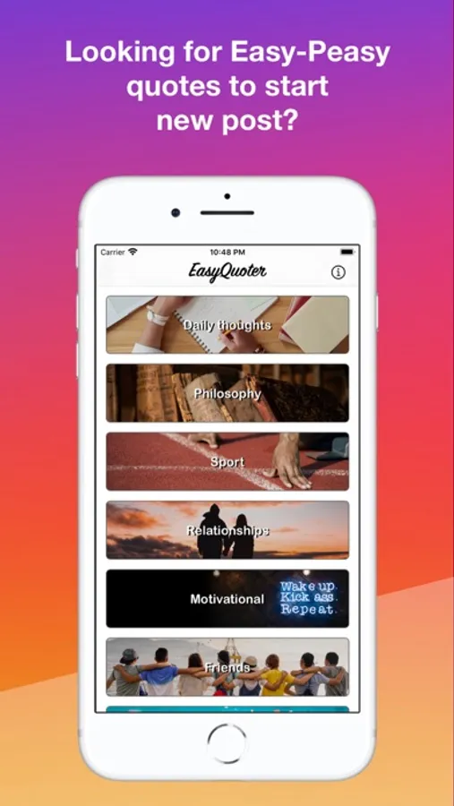 With the purchase you get several advantages at once. The most important thing - no Ads. The second one - offline access. The entire database of quotes, thoughts and phrases of this App will be in your pocket, available always and everywhere, no matter is there Internet connection or not. It’s more convenient, it’s forever.