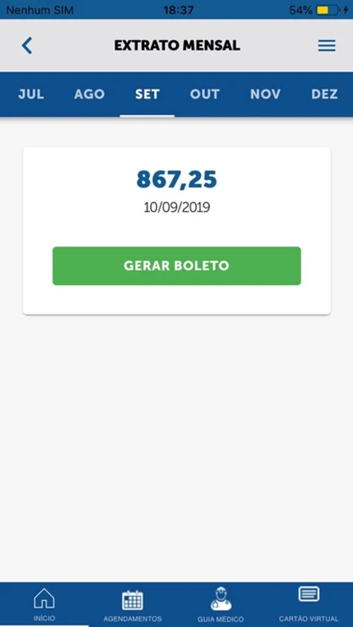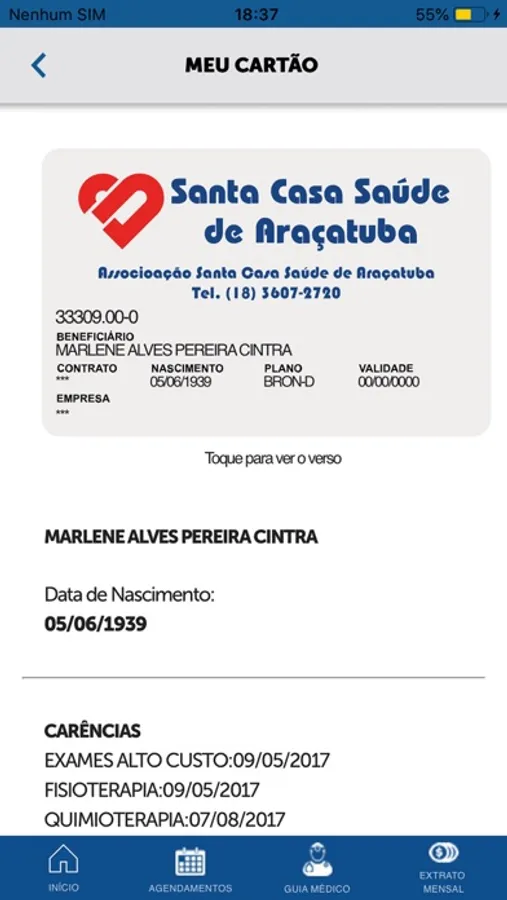 • Extrato mensal: Relatório com os procedimentos realizados pelo beneficiário, com geração de boleto disponível pelo próprio app.