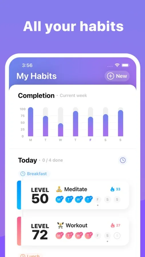 • Set and track any metric (steps done, minutes spent meditating…)