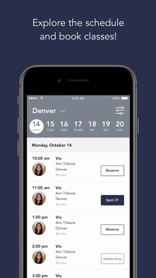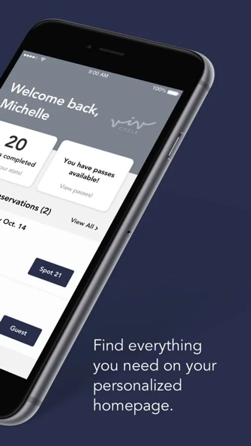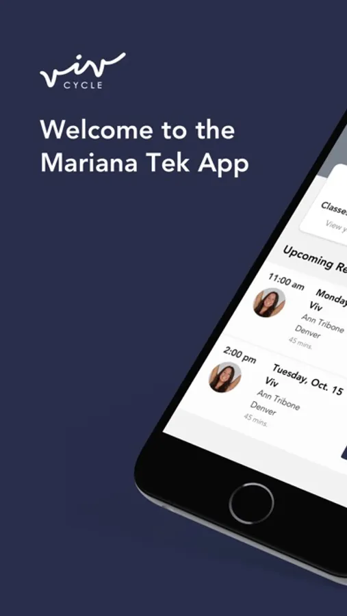 The Viv Cycle app allows Viv Cycle customers to sign in, view class schedules, sign up for classes, select a specific bike for class, cancel class, purchase class credits, view class history, check into class, among other features.