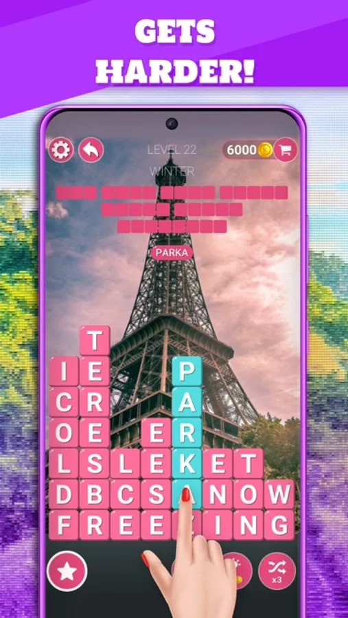 Each level contain letters distributed in a secret fashion. Swipe letters to connect word tiles. It starts easy at the beginning, but it will become challenging since you have to find the correct secret letters in a complex word stacks.