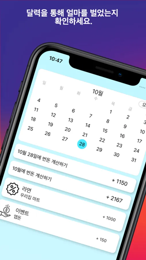 ② 달력을 통해 특정 일에 얼마를 절약했는지 확인하세요.