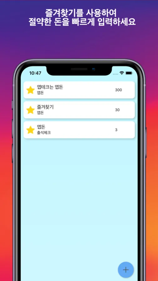 ① 즐겨찾기로 앱테크를 빠르게 입력할 수 있어요.